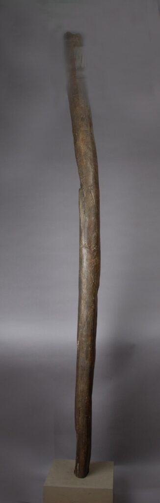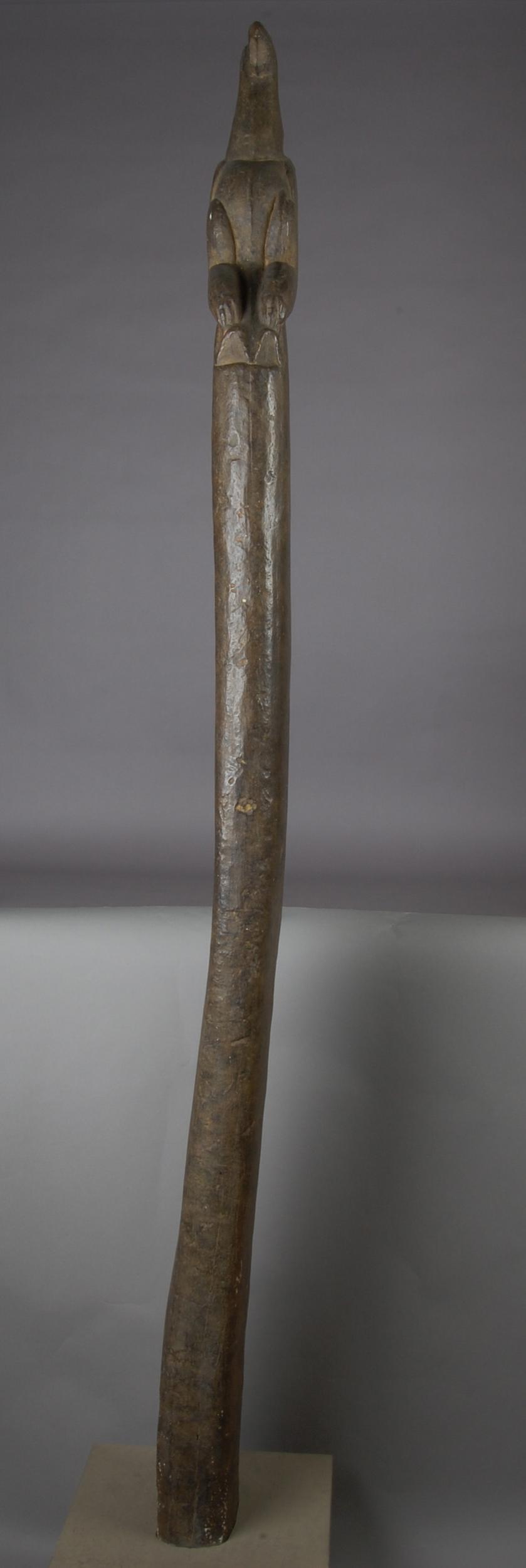 The British Museum also commissioned a replica cast of a beam (c. 175 cm high) with bird attached, giving an idea of what a complete object would have looked like; it is described as: ‘Cast; sculpture, made of plaster. In form of a bird sitting on top of a pedestal. Set into square base. Painted grey throughout to match original soapstone object. Distinguished by short panel of chevrons at front of chest. Plumage indicated by parallel oblique lines.’