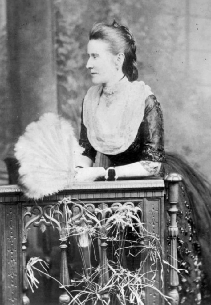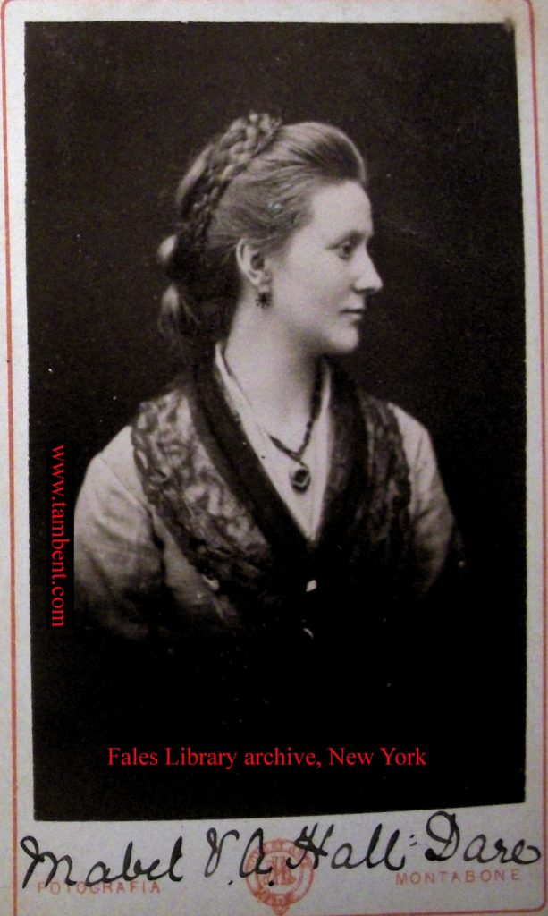 Mabel in her “princesse dress of rich white silk, trimmed with a flounce of Carrickmacross lace, with veil to match, and a set of pearls, the gift of the bridegroom.” From a newspaper article (newspaper not recorded), August 1887. An undated studio photo, probably taken after her marriage (photo: The Bent Archive).
